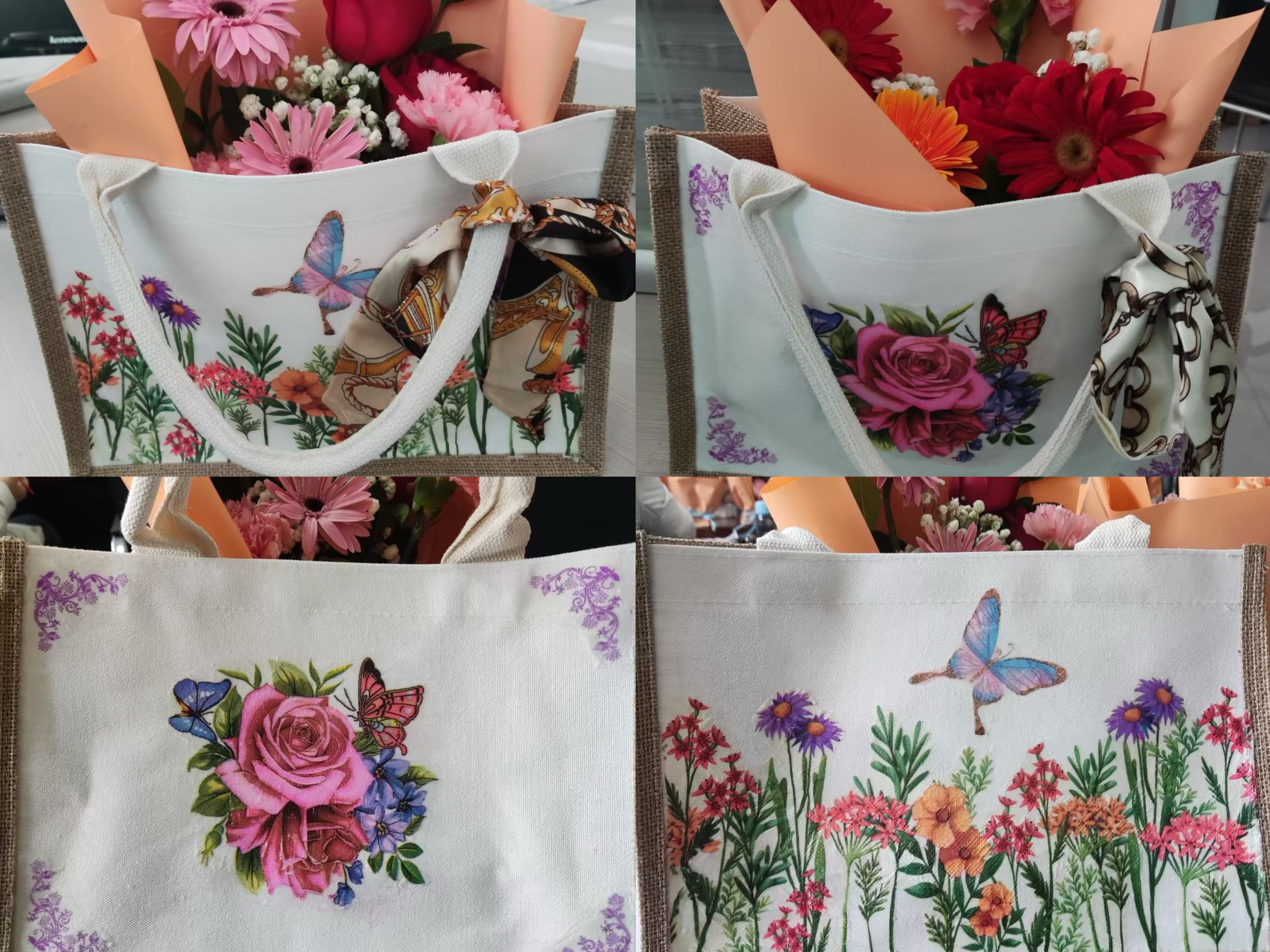 活动现场,指导老师为大家详细讲解了“蝶骨巴特”工艺的历史渊源、制作技巧和注意事项。随后,老师们精心挑选出各自喜欢的花卉、风景图案的专用纸巾,通过剪裁、拼贴、上胶、风干等工序,将个人灵感与巧思融入帆布包纹样之中,打造出独具特色的帆布手袋。活动现场气氛热烈,欢声笑语不断。经过近半小时的精心制作,一件件精美的环保袋逐渐完工。大家兴致勃勃地展示着自己手中新鲜出炉的帆布袋,互相品评,合影留念,分享着各自的创作想法。