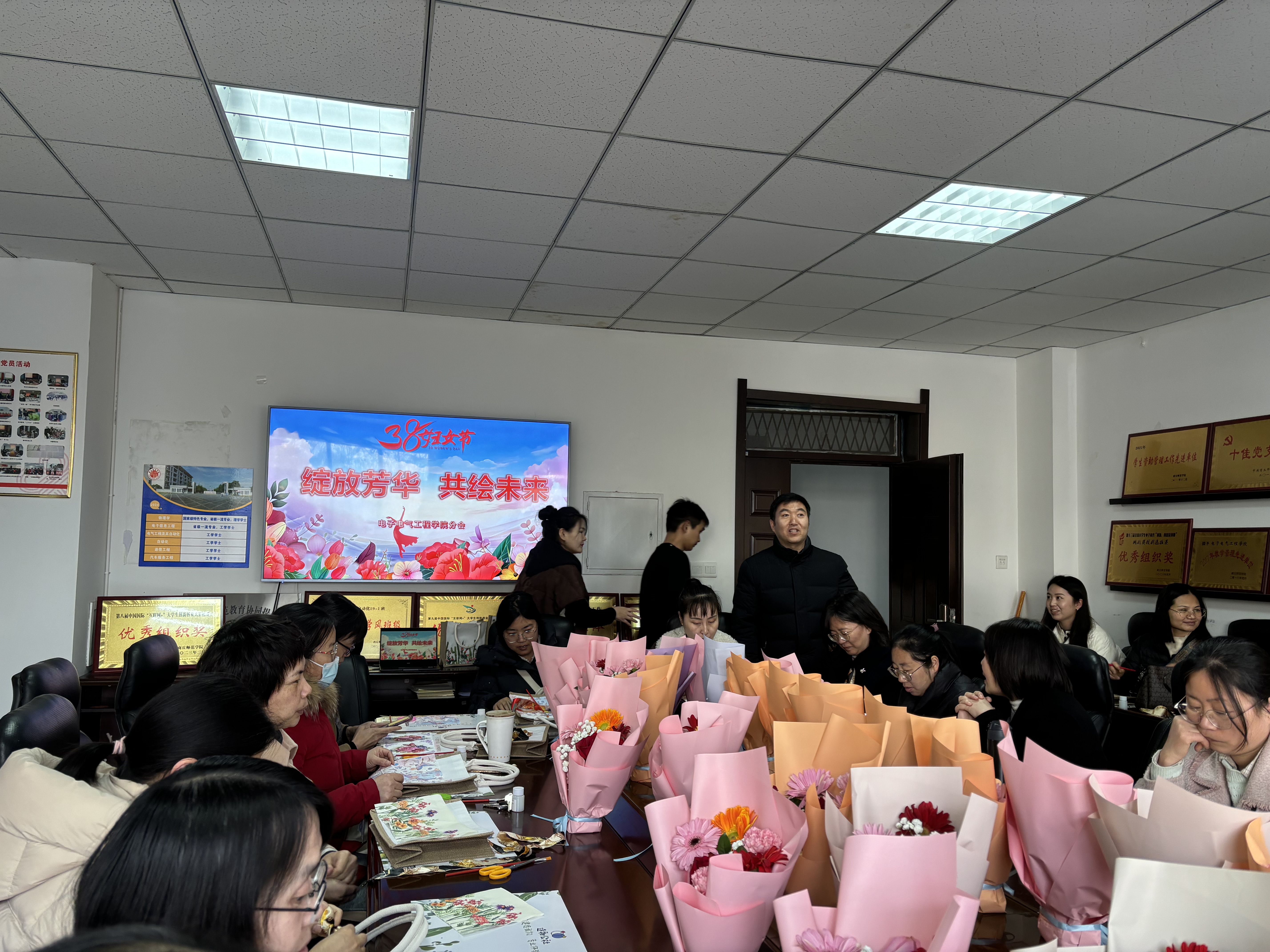 在春意盎然的三月,为庆祝第114个“三八”国际劳动妇女节,3月7日下午,太阳成tyc7111cc官网工会开展“绽放芳华共绘未来”蝶骨巴特帆布袋DIY活动,用艺术创意为环保赋能,让环保理念“袋袋”相传。公司女教职工参与体验,公司党委副书记蒋玉涛代表公司向全院女教职工致以节日问候和美好祝愿。