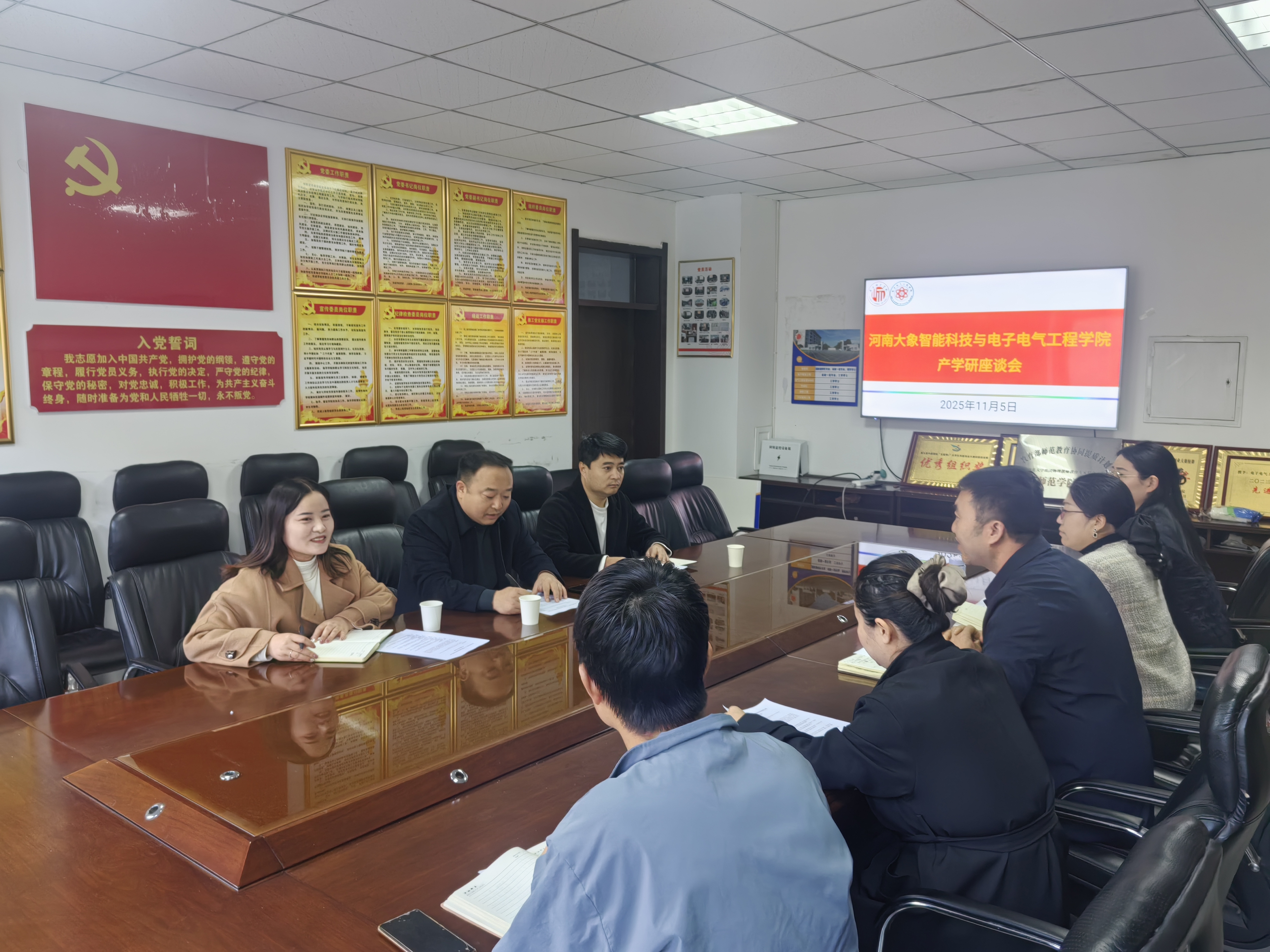 11月5日,河南大象智能科技有限公司董事长赵亚一行三人莅临公司,双方围绕人才培养、技术研发与成果转化等议题进行深入探讨和交流。公司党委书记蒋玉涛,电子系主任孙春志、学工办主任孙莉娟,通信系教师赵茜、26届毕业生辅导员郑敏参加。