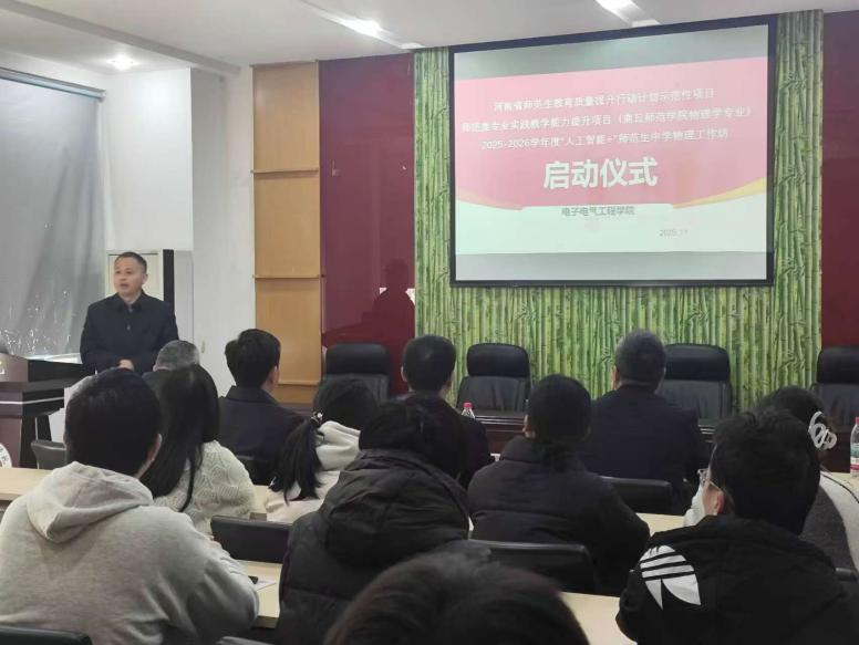 11月26日,公司举办的河南省师范生教育质量提升行动计划示范性项目——太阳成tyc7111cc官网物理学专业实践教学能力提升暨“人工智能+”师范生中学物理工作坊开班仪式在睢阳校区物电楼208举行。经理赵纲领、副书记蒋玉涛、物理系主任刘伟民、物理系副主任刁心峰及班主任李莉参加,出席此次启动仪式的还有商丘市中学优秀教师和工作坊全体学员,启动仪式有刘伟民主持。