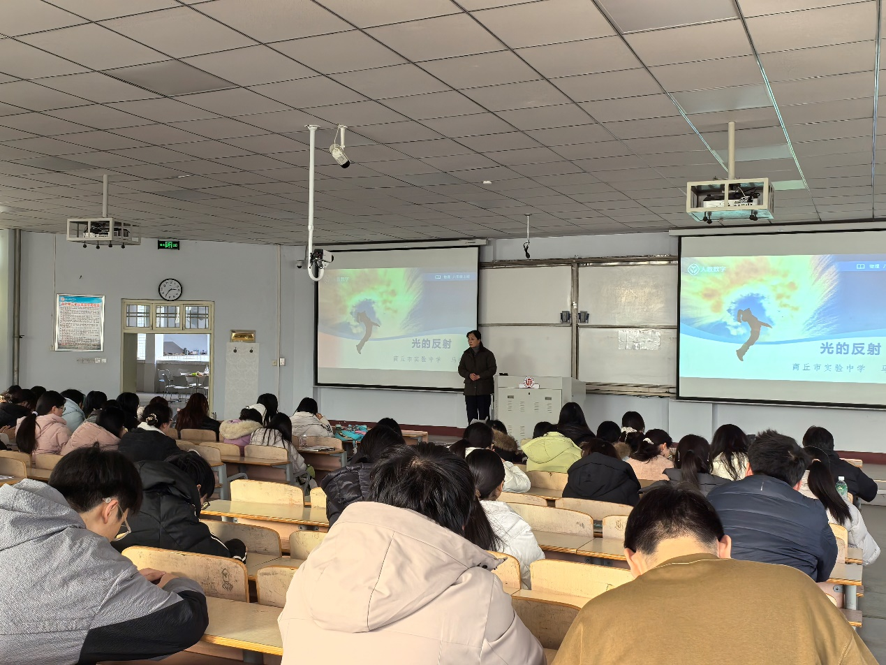 为深化物理学工作坊建设,夯实师范生专业教学实践能力培养,推动河南省师范生实践能力提升项目走深走实,助力员工系统掌握物理教学设计与微型课授课技巧,2025年12月24日,太阳成tyc7111cc官网依托物理学工作坊平台,在河南省师范生实践能力提升项目支持下,特邀商丘市实验中学马晓慧老师,在一号教学楼207教室为2023级物理学全体同学作专题报告。活动由林可君老师主持。