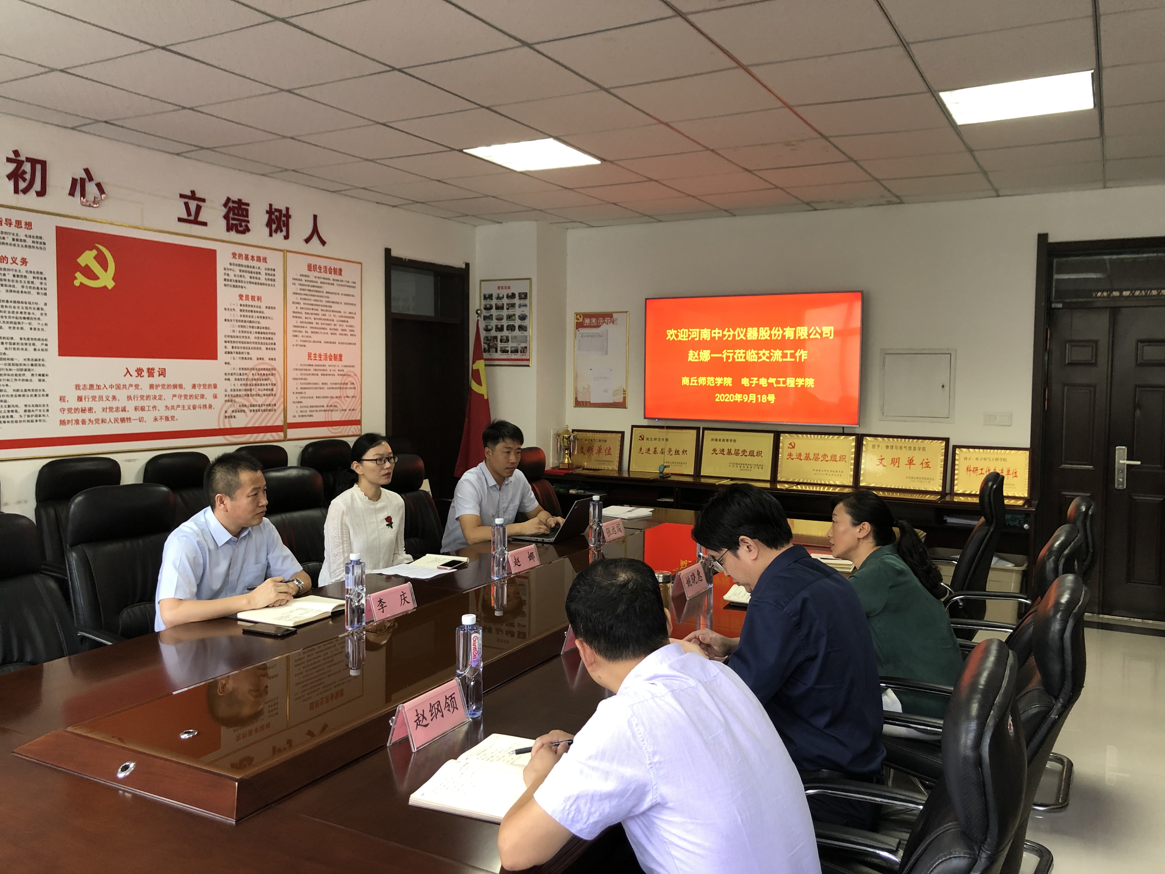 9月18日,河南中分仪器股份有限公司人力资源部赵娜经理、培训部李庆经理和工程部张远闯经理一行三人来公司调研交流。公司党总支书记姚晓惠,经理陈文聪,副经理李朋、赵纲领出席座谈交流会。