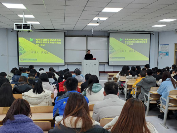 12月4日,电气自动化系在睢阳校区一号楼举行实习实训动员会,参加会议的有电气自动化系主任贾廷见,副主任李飙,老师马艳彬和2018、2019级员工,会议由贾廷见主持。