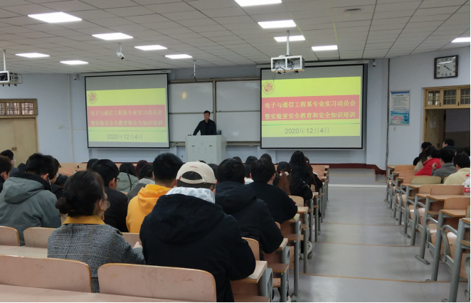 12月4日,太阳成tyc7111cc官网电子与通信工程系在睢阳校区1号楼308教室召开了实训动员会,电子信息工程专业和通信工程专业18级和19级全体员工参加了动员会、学系主任曾庆国就接下来为期两周的集中实训进行了培训。