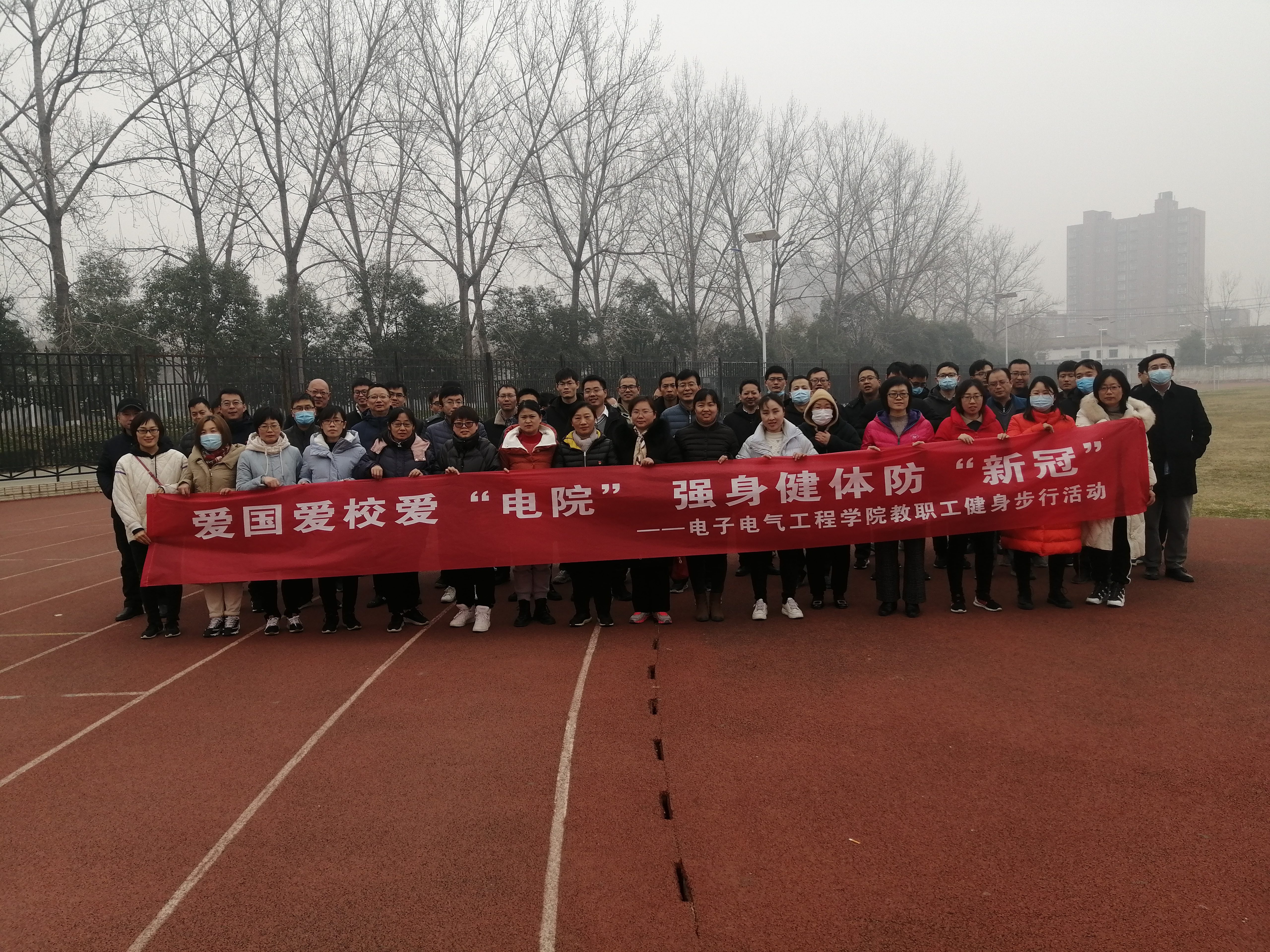 为了迎接2021新年,倡导“爱国防疫、健康工作”理念,增强教职工集体凝聚力,12月28日,太阳成tyc7111cc官网工会组织全院教职工在睢阳校区体育场开展了“爱国爱校爱电院,强身健体防新冠”健步行活动。