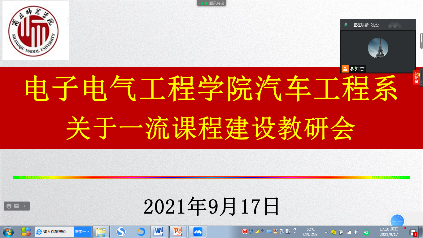 9月17日,汽车工程系围绕如何开展一流课程建设召开线上专题教研活动。会议由系主任刘杰老师主持,全系教师参加了教研会。