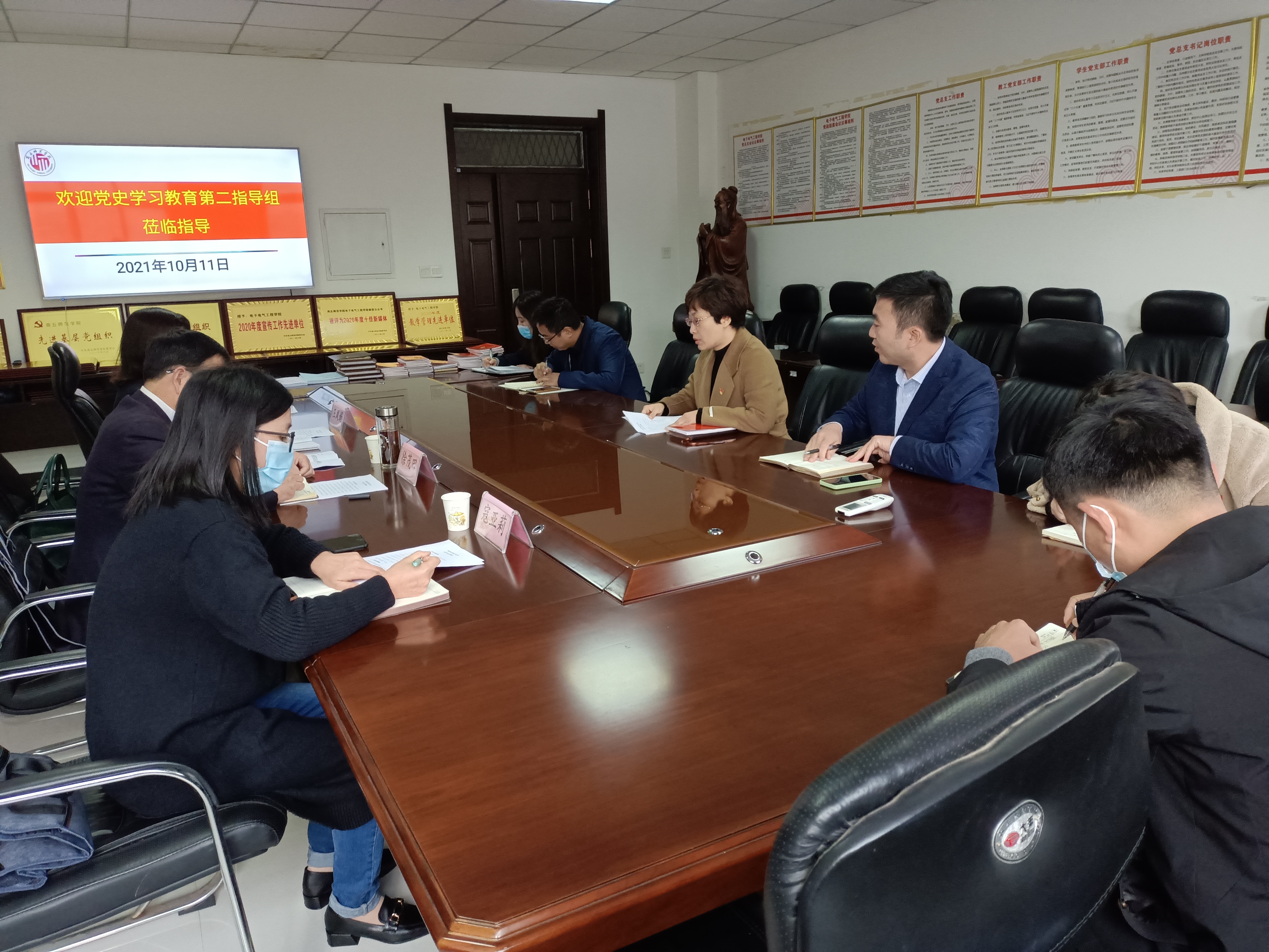 10月11日,副董事长、党史学习教育第二指导组组长徐茂田、党政办副主任王凤娟、机要科科长寇亚莉一行到公司调研指导党史学习教育。公司党委书记李琳、副书记蒋玉涛及师生党支部书记参加座谈会。