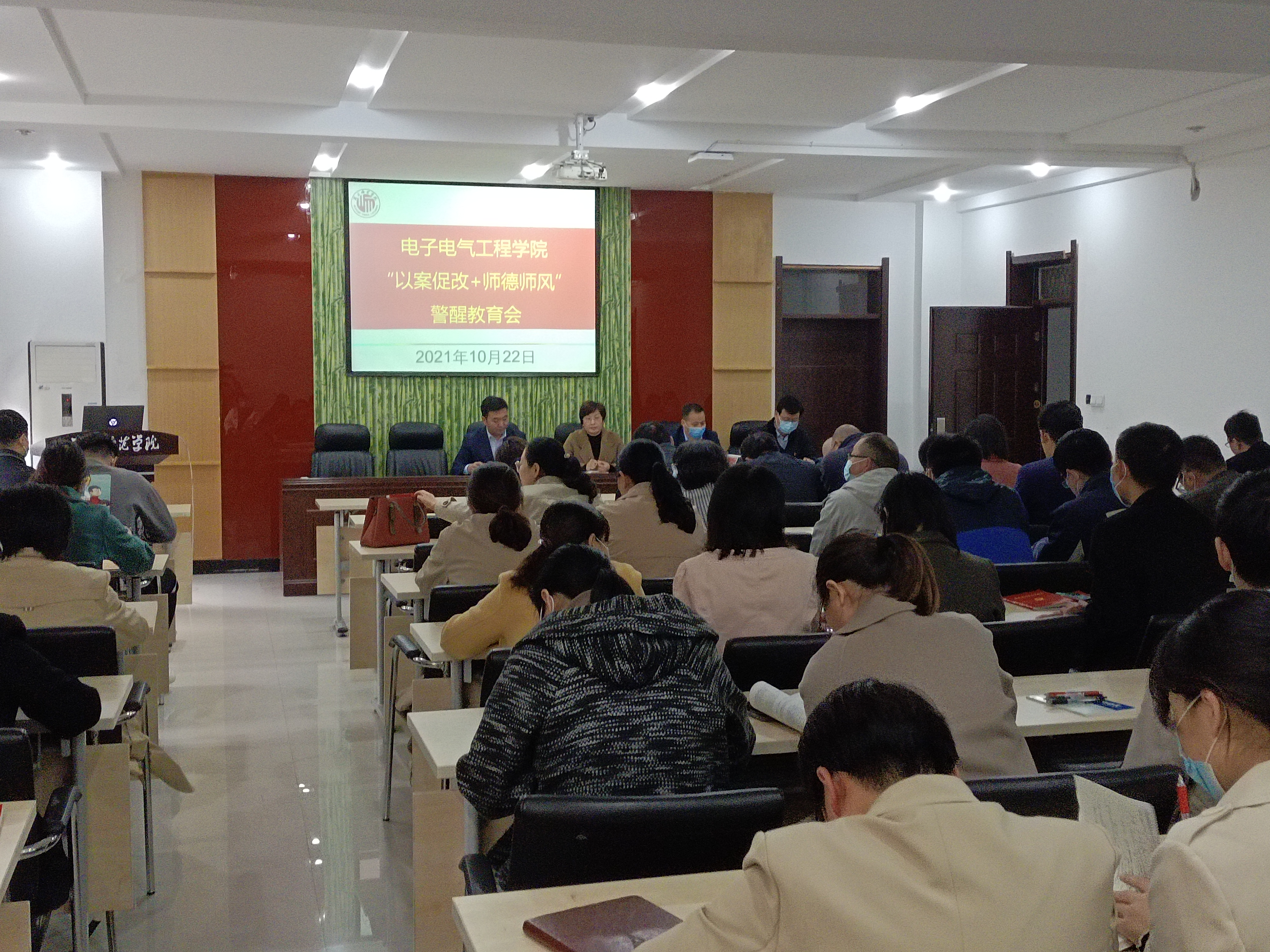 10月22日,太阳成tyc7111cc官网在睢阳校区召开“以案促改+师德师风”警醒教育会。公司领导班子和全体教职工参加了会议,会议由党委书记李琳主持。