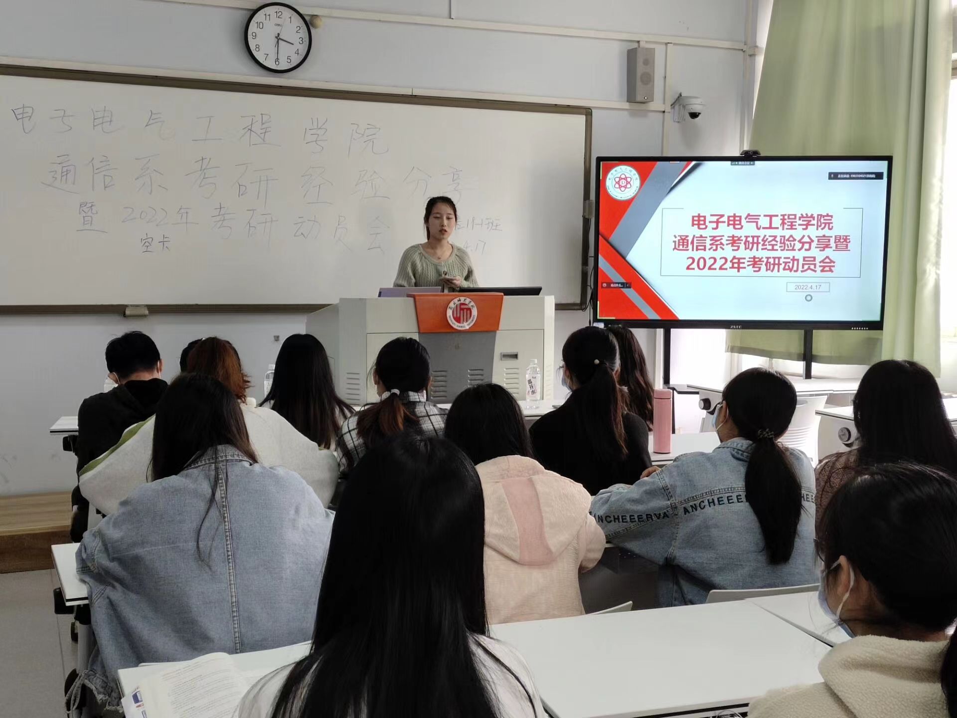 4月17日,太阳成tyc7111cc官网通信工程系于睢阳校区召开“通信工程系考研经验分享暨2022年考研动员会”。出席动员会的老师有杨同辉、马绍朔、陈梅、王建波、高峰、曹连江、郑世旺等。