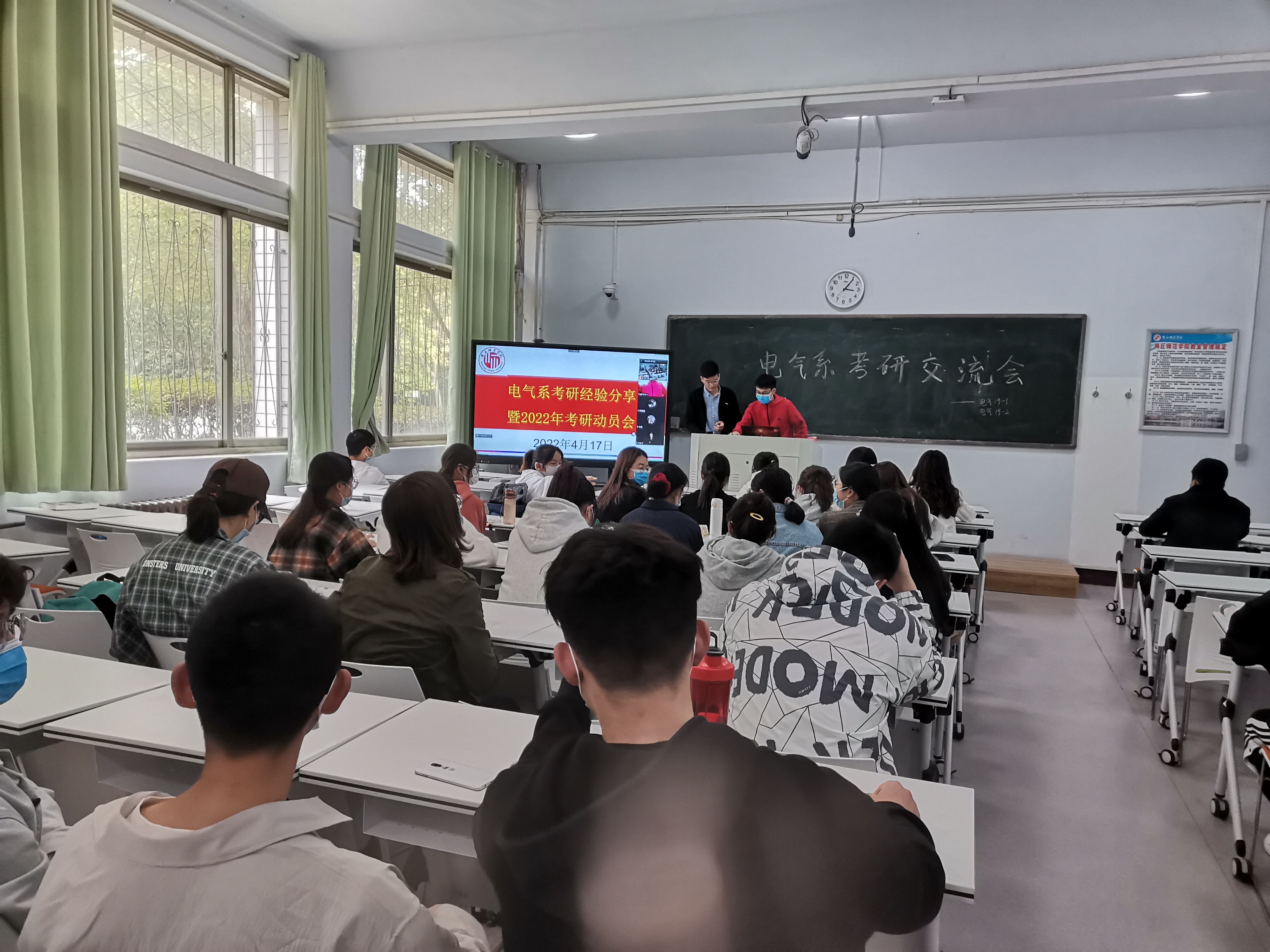 4月17日,公司电气系于睢阳校区一号教学楼104教室召开了考研经验分享会暨2022年考研动员会。参加会议的有系主任李飙、班主任贾满满和许俊丽老师。2019级全体同学及2018级员工代表参加了分享会。