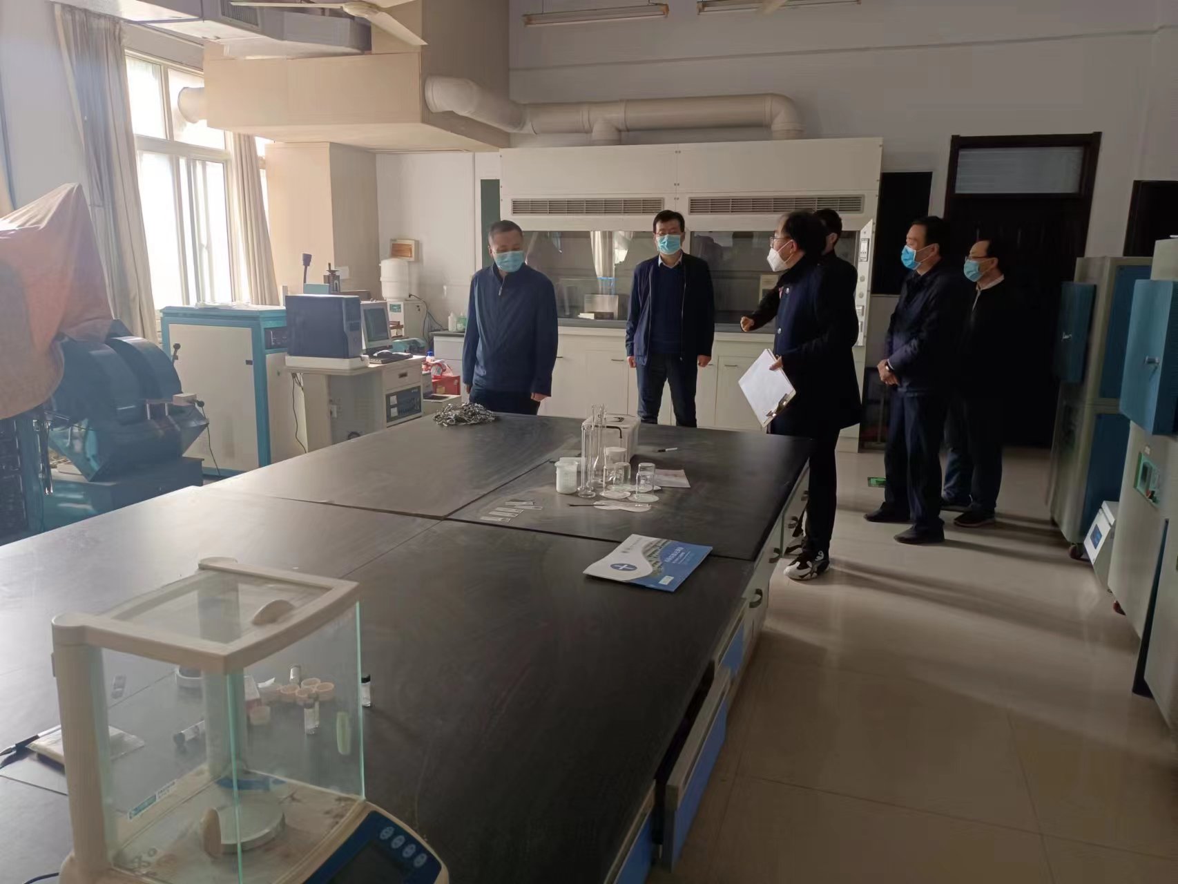 在实验综合楼,赵纲领一行检查了新进的教学科研仪器设备,各个实验室及办公室的安全卫生情况,并对存在的安全隐患一一指出,要求管理人员要对指出的问题和不足建立台账,限期整改,并举一反三,彻底消除各类安全隐患。在检查过程中,实验室中心主任麻焕锋汇报了新进设备购买、存放的情况,实验室管理制度和措施等。