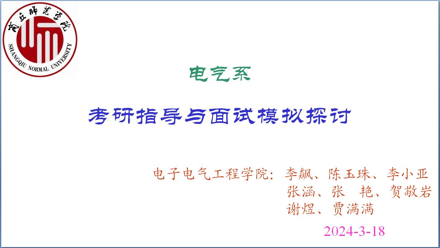 为助力考研学子顺利上岸,3月18日,电气系于物电楼208开展“考研指导与面试模拟探讨”主题活动,此次活动旨在进一步激发即将参加研究生复试同学们的备考热情,提升应试能力,确保在即将到来的复试中能够取得优异成绩,活动由电气系主任李飙主持,20级辅导员李小亚、电气20-2班主任陈玉珠、张涵、张艳、贺敬岩、贾满满和谢煜等七位老师参加。