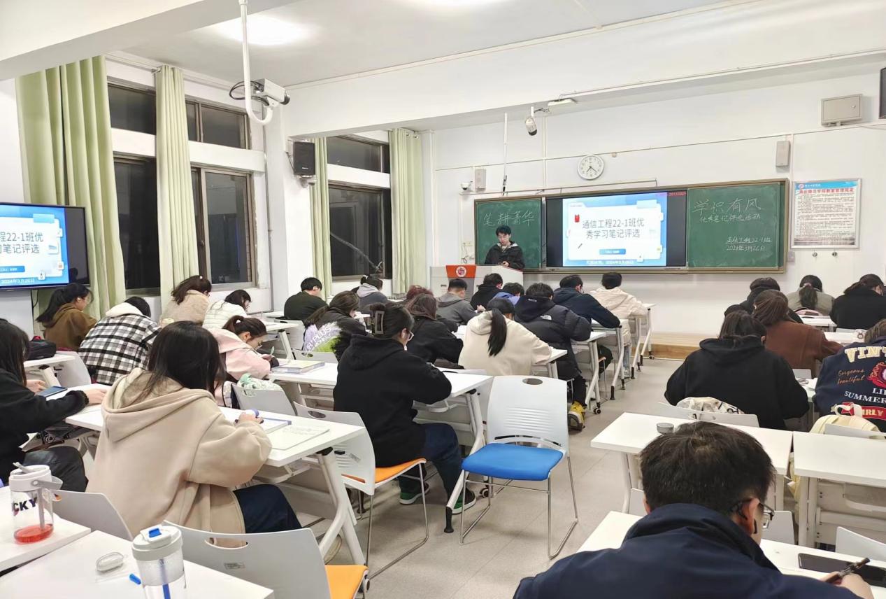 3月26日,通信工程22-1班举行了一场别开生面的“笔耕菁华,学识有风”主题活动。活动共21名同学踊跃参与,现场氛围热烈非凡。几位成绩优异的同学深入阐述了笔记在学习过程中的关键作用,并向同学们传授了如何高效记录笔记、如何利用笔记提升学习效果的秘诀和技巧。最终,杨梦园获得一等奖、吴丽丹获得二等奖、潘怡婷获得三等奖。