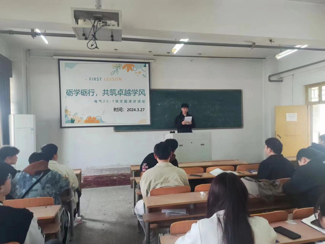 3月27日,电气工程及其自动化22-1班在物电楼602教室举行了“励学励行,共筑卓越学风”演讲比赛。本次比赛由班长刘豪主持,刘世龙、李伟、权筱涵、李云杰、穆子钰、吴佳颖等10位同学参赛,15位宿舍长担任评委。比赛以“励学励行,共筑卓越学风”为主题,旨在加强班级学风,营造积极向上的学习氛围,提高员工的综合素质。