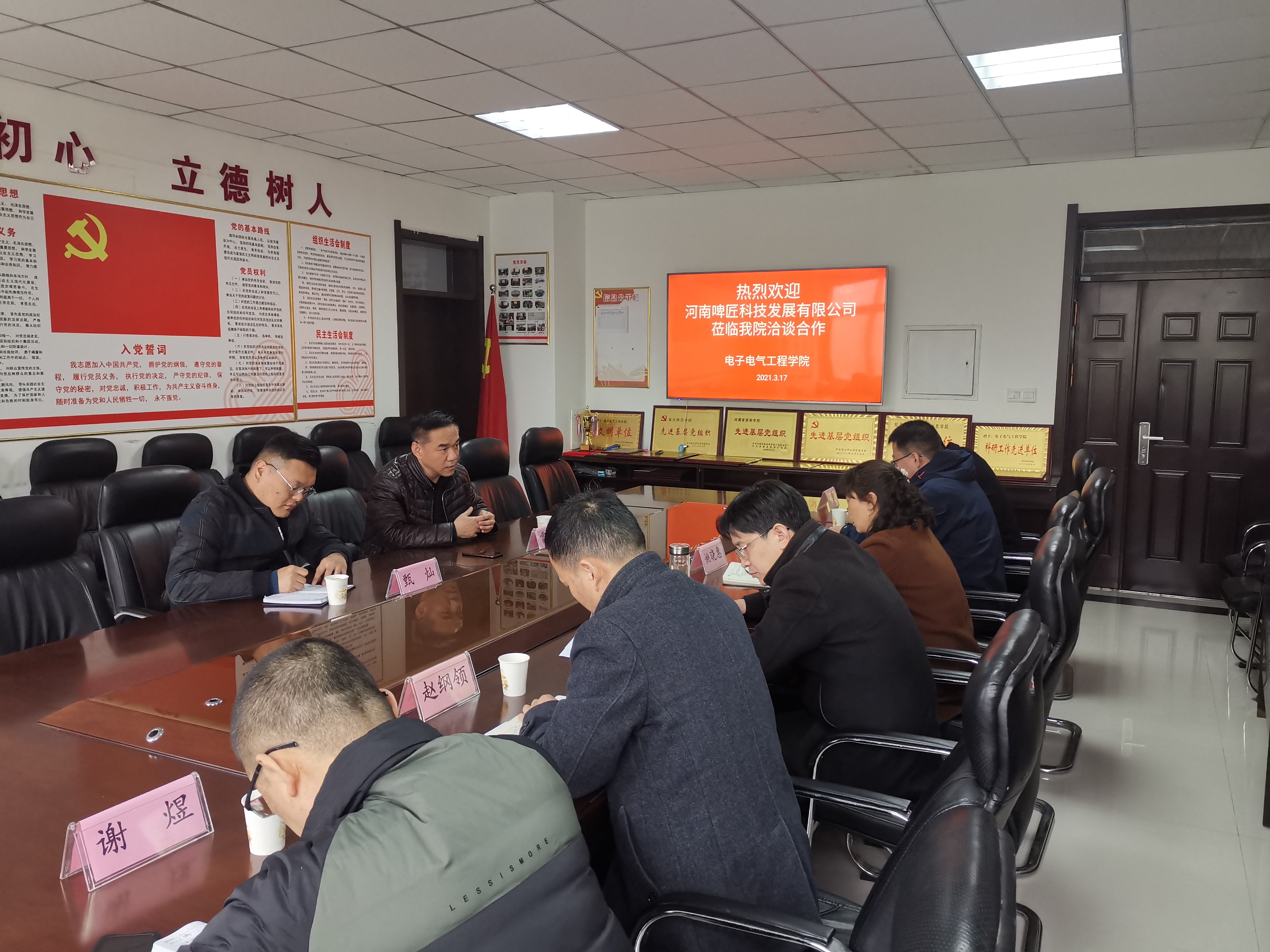 3月17日,河南啤匠科技发展有限公司总经理雷海荣、甄灿一行两人莅临公司太阳成tyc7111cc官网,就校企合作事宜进行了交流洽谈。公司党总支书记姚晓惠、经理陈文聪、副经理李朋和赵纲领,以及专任教师贾廷见和谢煜参加座谈会。座谈会由赵纲领主持。