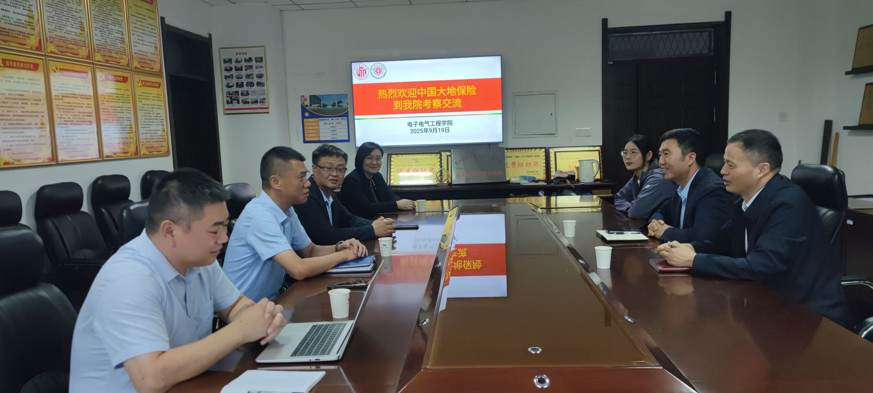 9月19日,中国大地财产保险股份有限公司山东分公司来公司考察交流并举办专场招聘会。中国大地财产保险山东分公司党委委员/总经理助理夏庆国、人力资源部/党委组织部总经理助理王敬、理赔部副总经理张进强、河南分公司商丘中支总经理李贝、副总经理苗娟,经理赵纲领、公司党委副书记蒋玉涛及2026届毕业生辅导员出席交流会,毕业生代表参加招聘会。