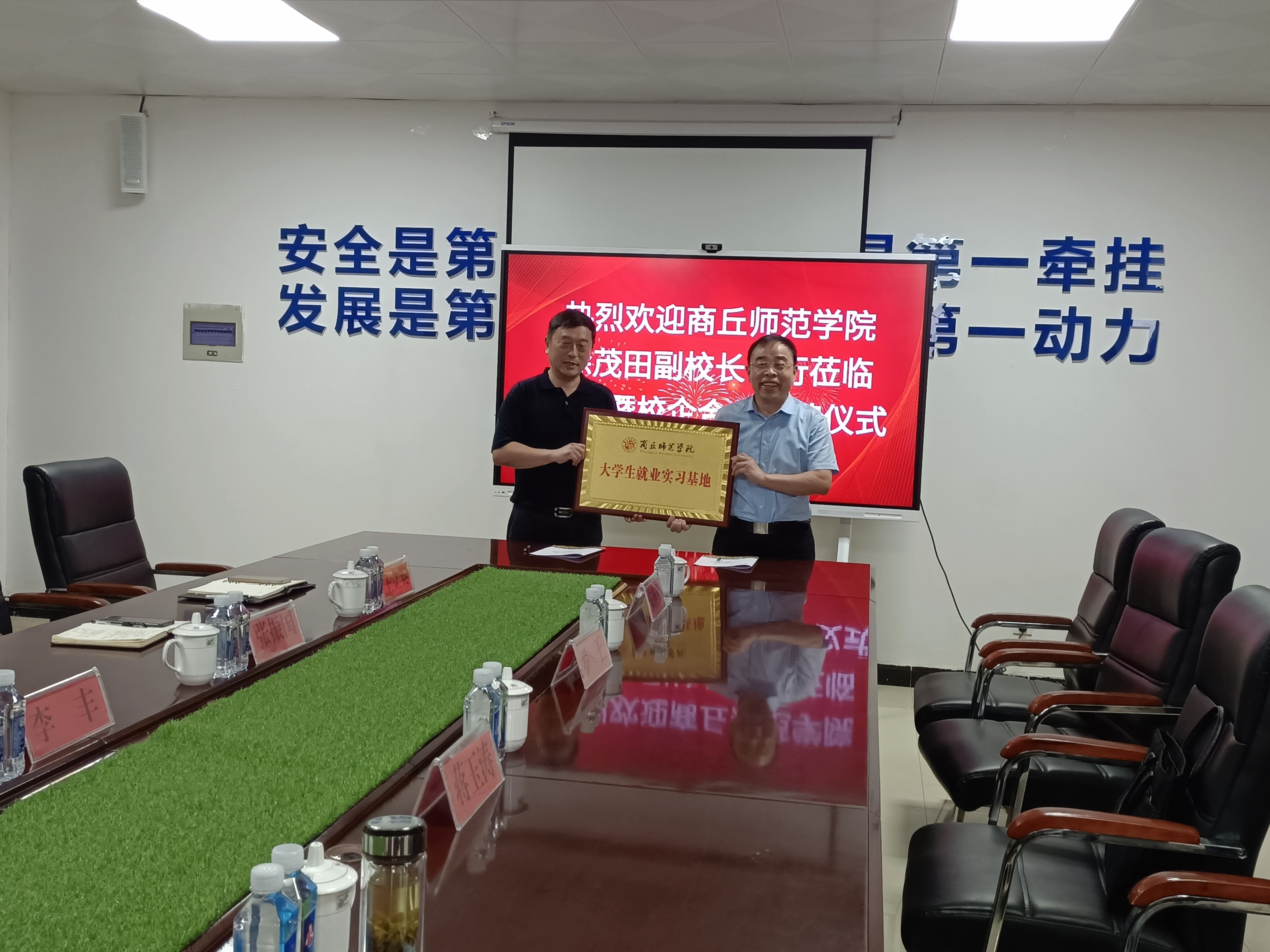 7月29日,副董事长徐茂田带领太阳成tyc7111cc官网主要负责同志到商丘国龙新材料有限公司开展共建研发中心和访企拓岗促就业活动,召开座谈会。