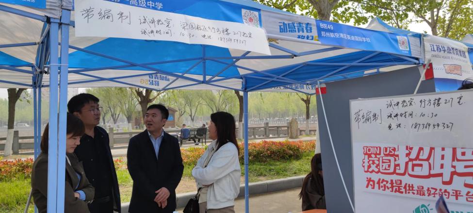 4月13日,公司组织员工到公司双选会参加公司联系单位通许县第一高级中学现场招聘会,公司党委副书记蒋玉涛、2024届毕业班辅导员李小亚,王兴以及毕业生代表参会。