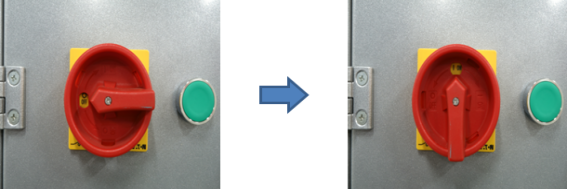 将主令开关由“OFF”位置,顺时针旋转至“ON”位置。