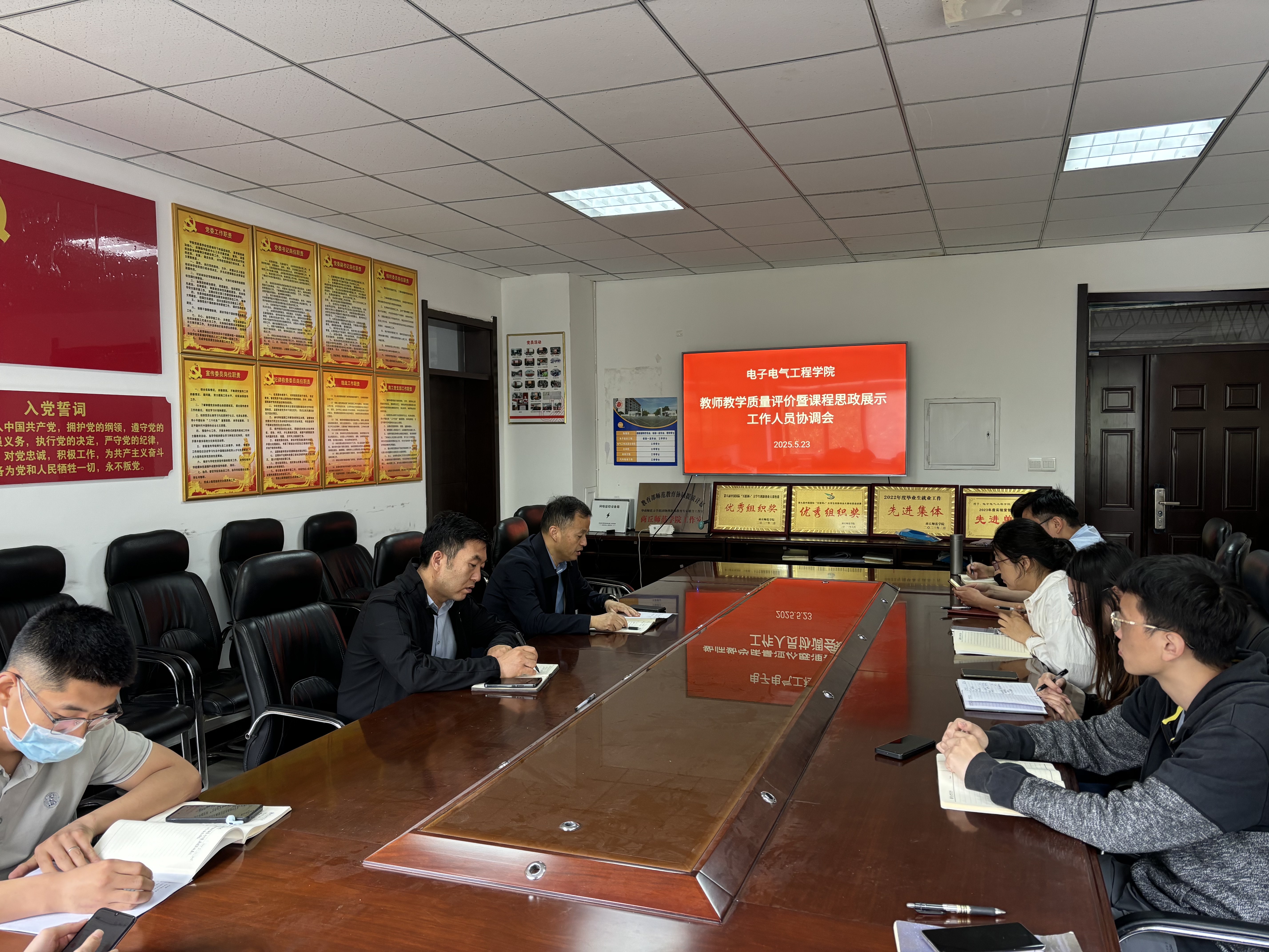 5月23日,公司于物电楼206召开教师教学质量评价暨课程思政展示工作人员协调会。经理赵纲领、副书记蒋玉涛、教学办主任吕志、学工办主任孙莉娟以及相关工作人员参加了此次会议。