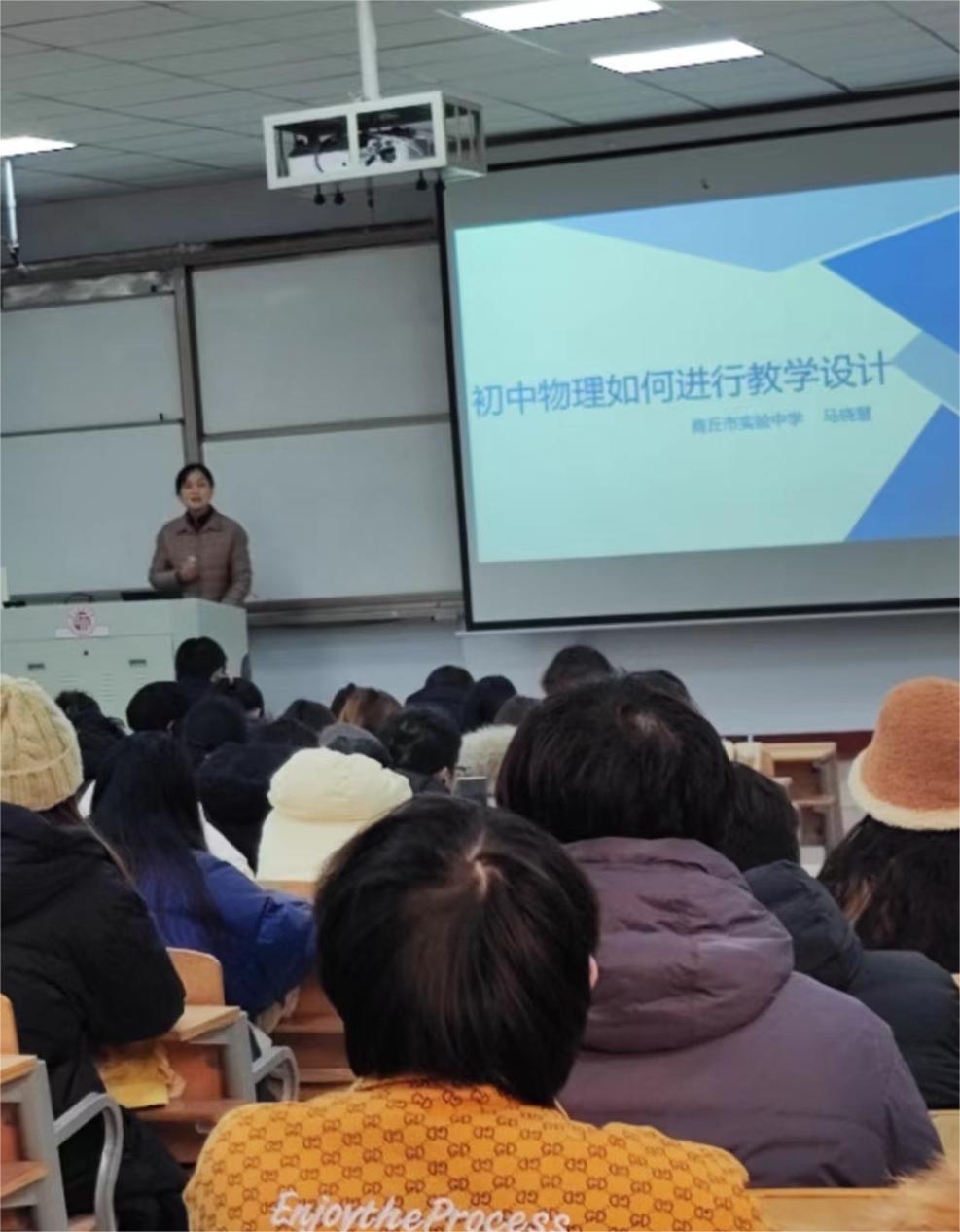 商丘市实验中学马晓慧老师做了《初中物理如何进行教学设计》的讲座。马老师从物理学科核心素养出发,详细阐述了如何确定教学目标、如何选择教学方法、如何将实验融入教学设计等问题,以初中物理《电功率》这节课为载体,给同学们讲述了如何做初中物理微型课的教学设计。马老师的讲座有理有据,员工们感到受益匪浅。