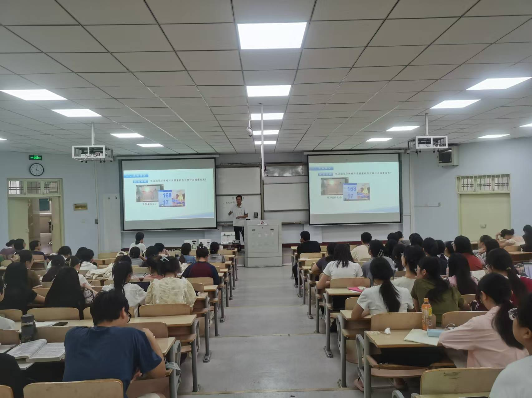 9月10日,在睢阳校区1号教学楼106教室,公司邀请商丘市实验中学两位一线优秀教师:高扬和马晓慧,分别为员工带来一堂公开课和教学技能专业讲座,曾庆国副经理、校内指导教师和21级参加校内教育实习的物理学专业全体员工参加。