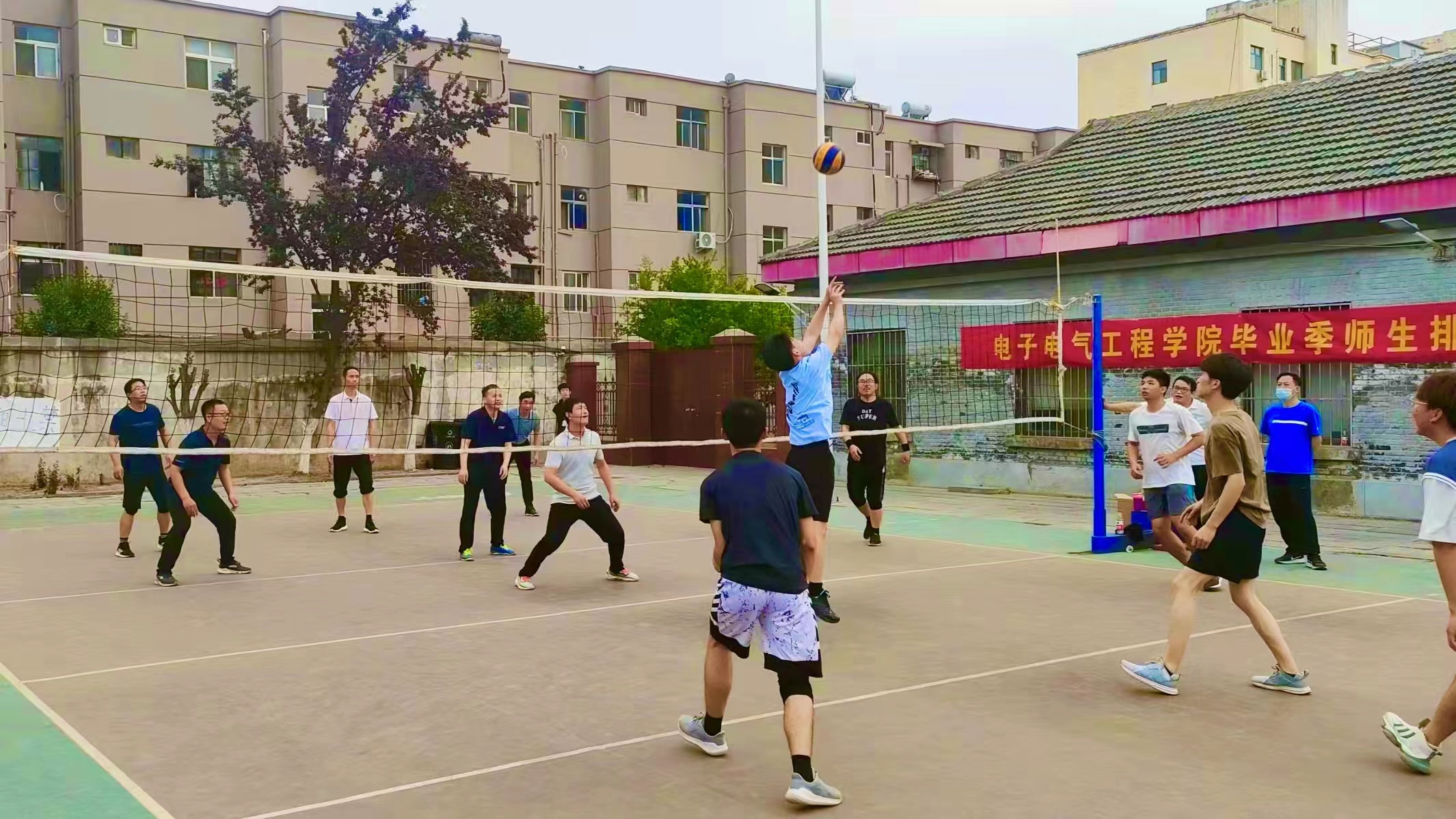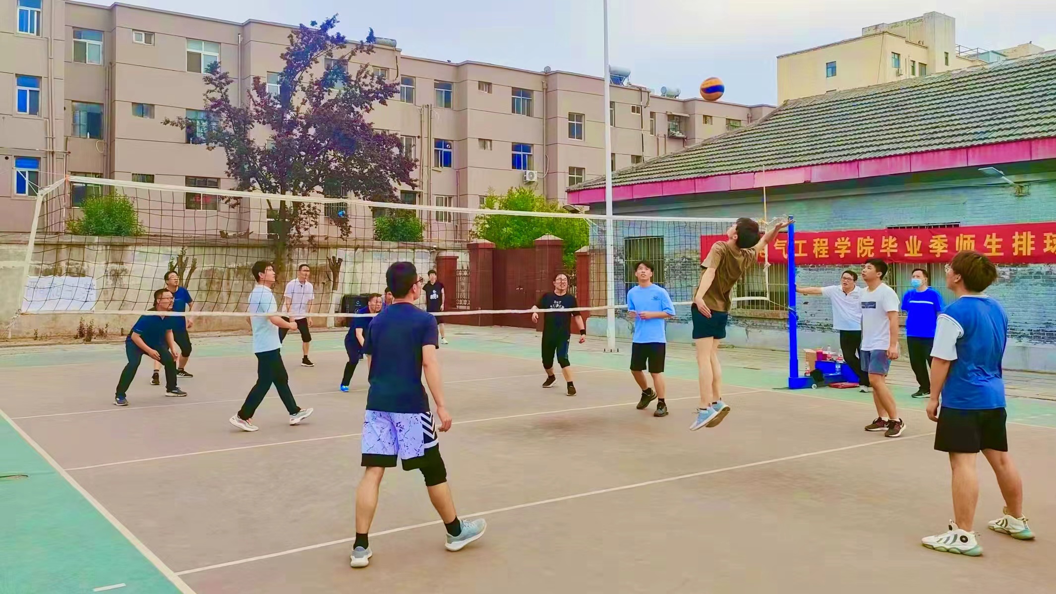5月24日,太阳成tyc7111cc官网于睢阳校区举办欢送2022届毕业生师生排球友谊赛,公司教师及2022届毕业生代表参加本次比赛。