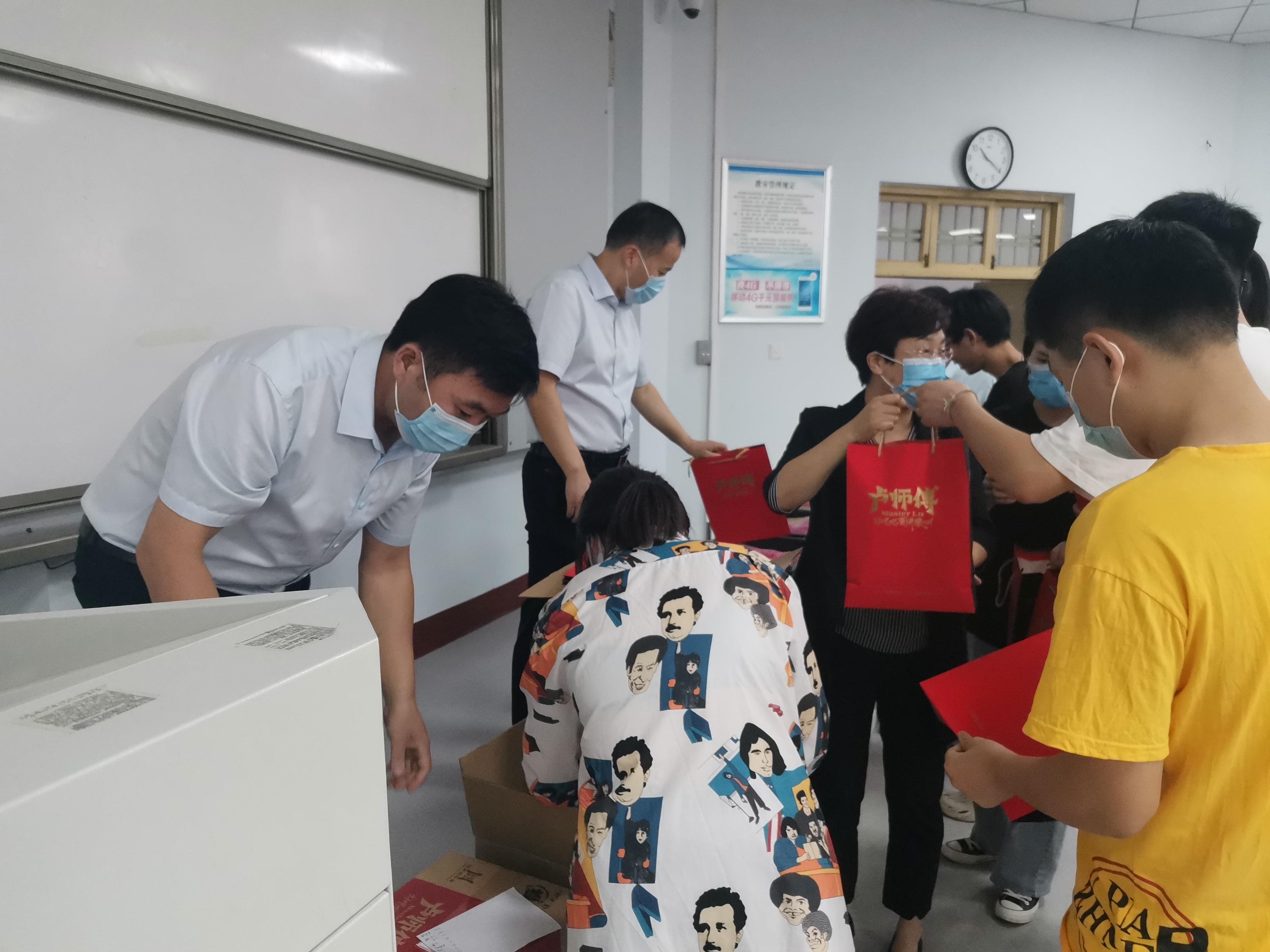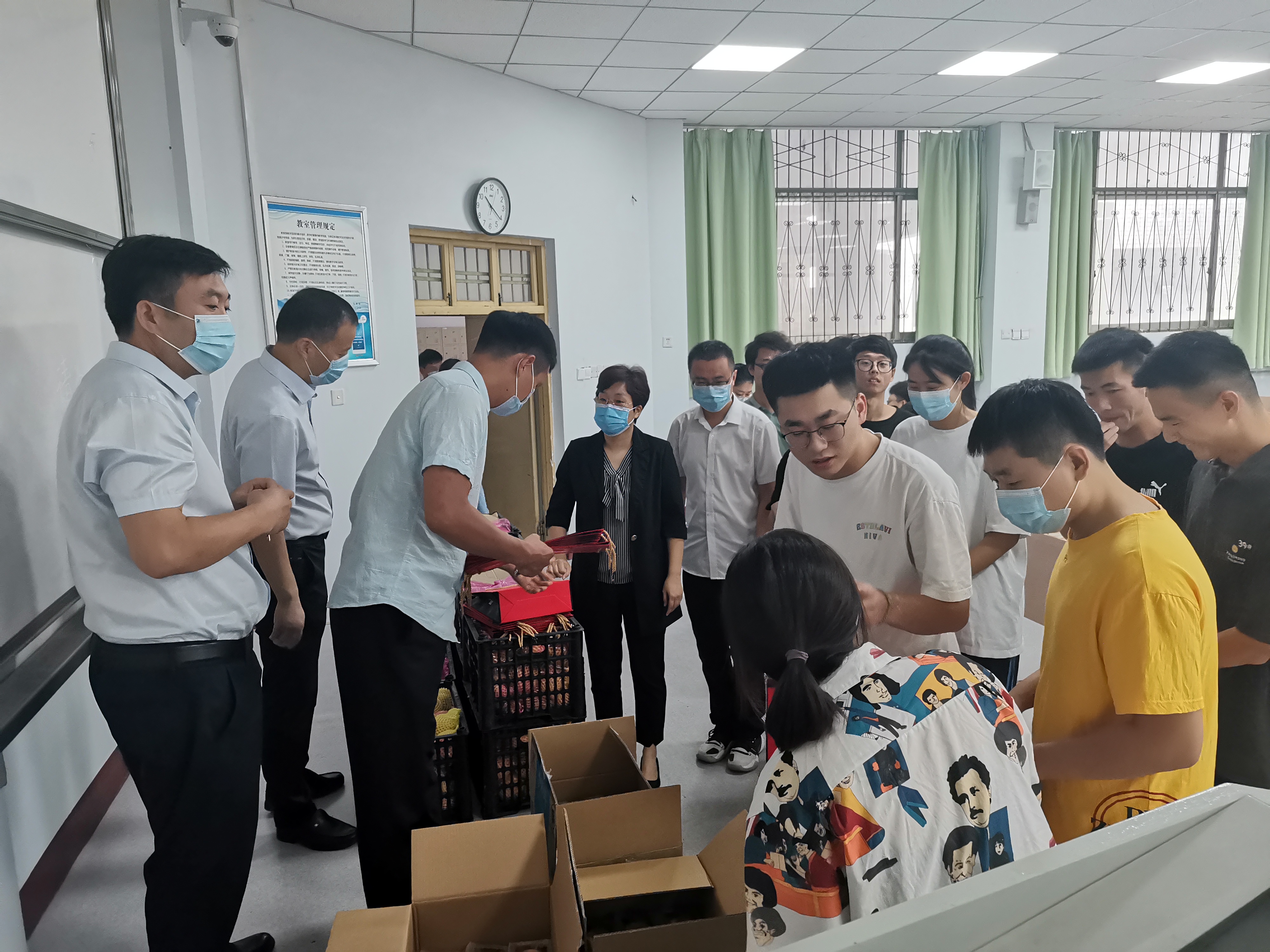 9月18日,公司领导班子成员李琳、赵纲领、蒋玉涛带领全体辅导员走访慰问留校员工,为同学们送去了月饼和水果。